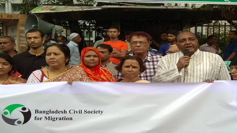 Rights activists and returnee female migrants on Thursday urged the government not to send women workers to Saudi Arabia until and unless ensuring their workplaces protection. They said women migrant workers are not the money making machine. So the authority should give priority to their interests. The rights campaigners demanded for active role of Bangladesh Embassy in Riyadh to take legal action against the offender employers. The employers also have to take all responsibilities of the pregnant women workers and their children who were raped at workplaces. The activists made their demands at a press conference at the National Press Club in the city, organized Bangladesh Civil Society for Migration. Returnee migrants, Sharmin, Mousami, Kulsum and Lata, narrated their experiences of suffering in the Saudi Arabia. Excessive works, low wages, lack of foods and physical abuses they had to face in the workplaces. Manusher Jonno Foundation director Rina Roy said if it is not possible to fulfill their safety, the government has to think whether they will send women worker or not to Saudi. Since January, about 1000 women domestic helps came back home following workplaces exploitation. A good number of women are waiting for coming home at the Embassy’s safe home and immigration camp in the Arab country, according to the press statement. But the government doesn’t want to acknowledge the high figure of victim women. Indonesia and Philippines protest against any torture on their domestic helps in the Kingdom of Saudi Arabia (KSA). The countries also reduced sending women workers to the kingdom, the statement said. After that the KSA decided to hire workers from Bangladesh. About 0.2 million women workers went to the oil-rich country since singing female workers recruitment deal in 2015. Sumaiya Islam, director of Bangladeshi Ovhibashi Mohila Sramik Association said women workers are not getting due facilities in Saudi Arabia. Standard wages, working hour, overtime, food and accommodation were mentioned in the Memorandum of Understanding (MoU), signed between Dhaka and Riyadh, she added. Syed Saiful Haque, chairman of WARBE Development Foundation said the government should give financial and others necessary supports to the victim women workers. Shariful Islam Hasan, programme head of Migration of BRAC, Faruque Ahmed, secretary general, WARBE DF, RMMRU director Marina Sultan , among others were present at the programme.